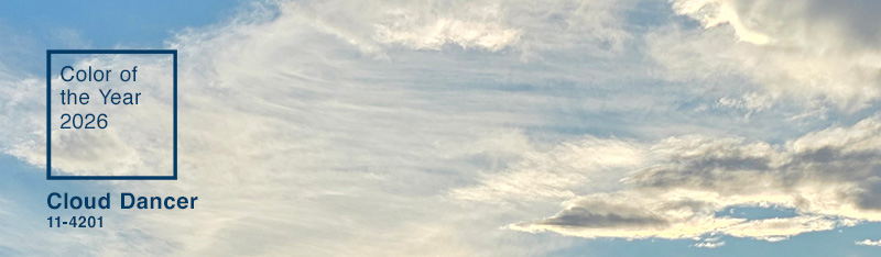 “A billowy white imbued with serenity, PANTONE 11-4201 Cloud Dancer encourages true relaxation and focus, allowing the mind to wander and creativity to breathe, making room for innovation.”